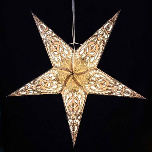 Een papieren kerstster is onmisbaar om in huis een gezellige kerstsfeer te creëren. Onverlicht is deze papieren kerstster al prachtig. Maar met verlichting komt de ster 's avonds helemaal tot leven. De kleuren en het patroon komen dan nog mooier uit.