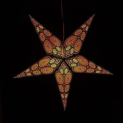 Papieren kerstster Ø60 cm incl. verlichtingskabel - Goa zwart/oranje/geel